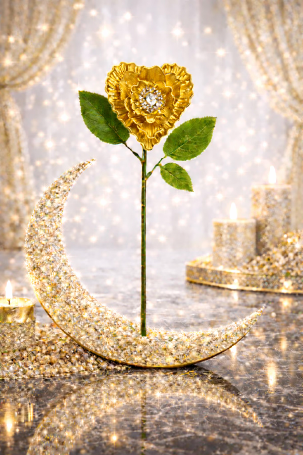 Cette rose décorative incarne la chaleur, l'harmonie et l'élégance intemporelle. Une pièce raffinée qui trouve naturellement sa place dans un intérieur chic, une vitrine ou une composition florale d'exception.