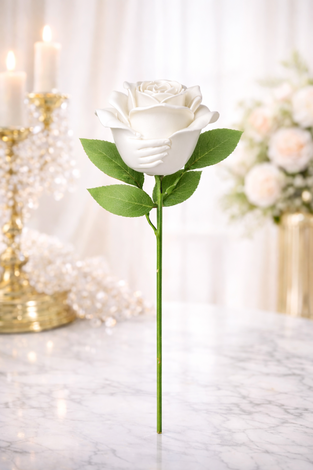 Entièrement façonnée à la main, cette création artisanale révèle des pétales finement sculptés, au fini lisse et sophistiqué. Chaque détail est travaillé avec exigence pour offrir une œuvre florale durable et haut de gamme.