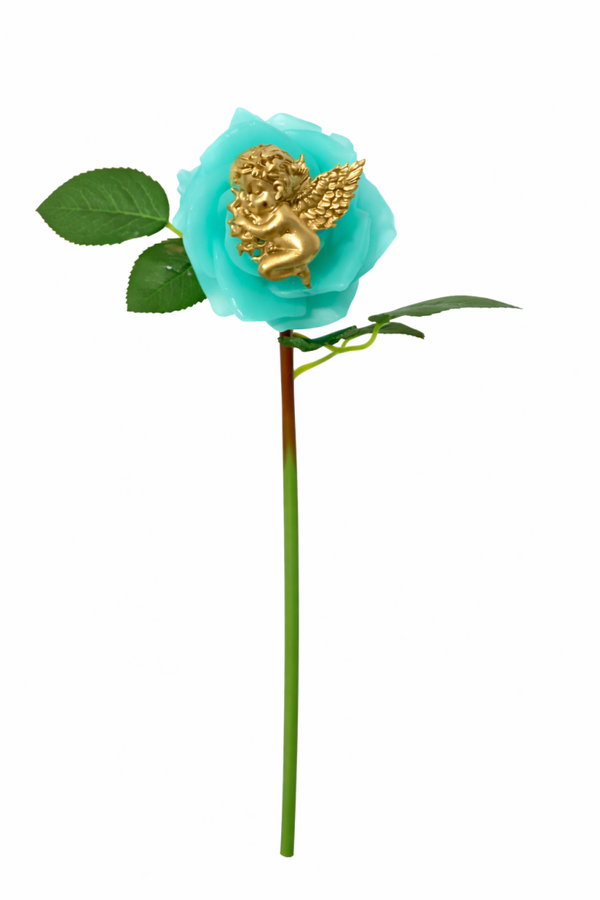 Majestueuse et captivante, la rose bleue en résine avec ange doré symbolise la confiance, la loyauté et la sérénité. Sa teinte bleu profond contraste harmonieusement avec l’éclat doré de l’ange délicatement fixé en son centre.