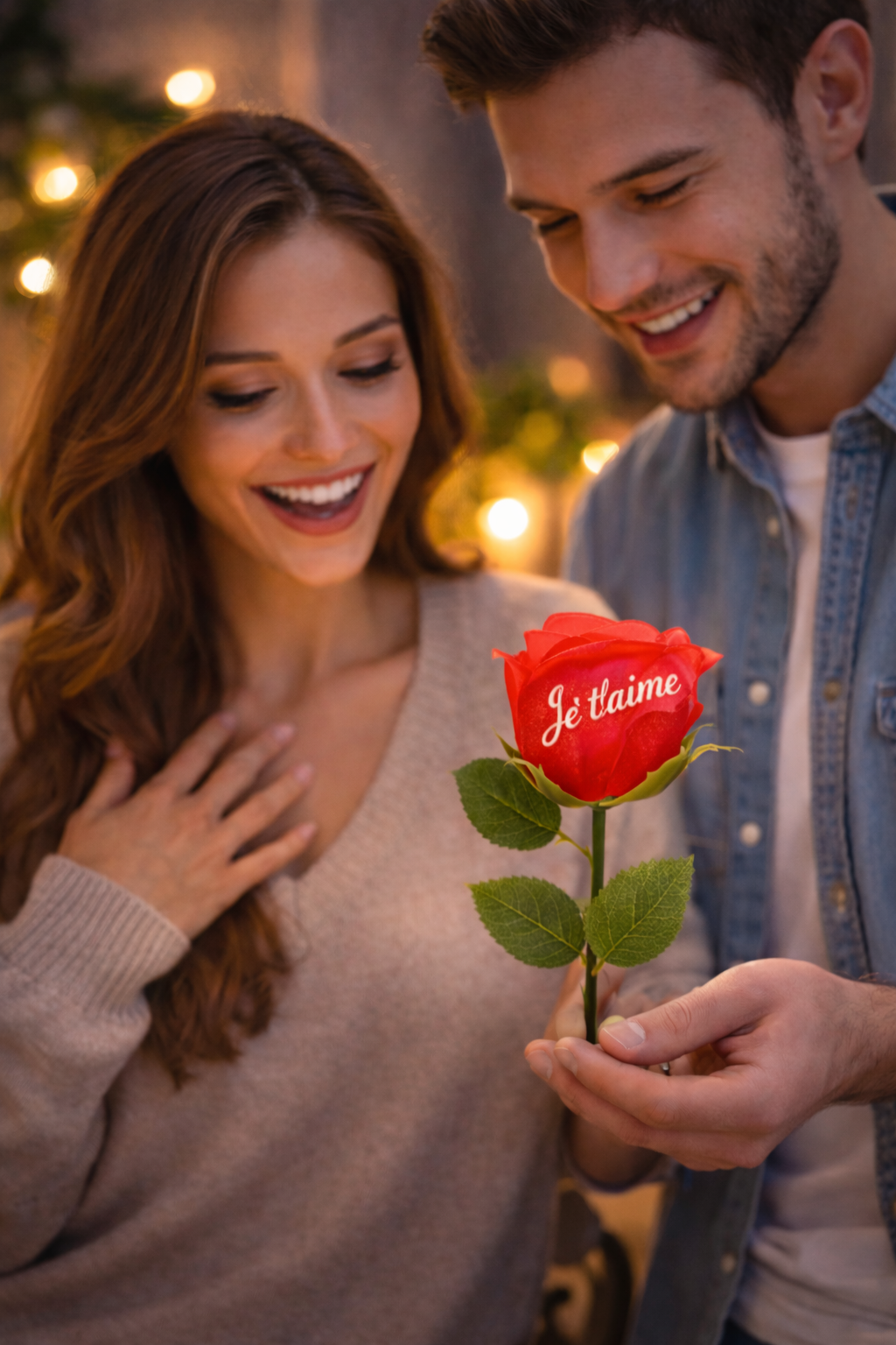 Fabriquée en résine résistante, cette rose est conçue pour durer dans le temps. Elle peut être utilisée aussi bien en intérieur qu’en extérieur, tout en conservant son éclat et son message d’amour.